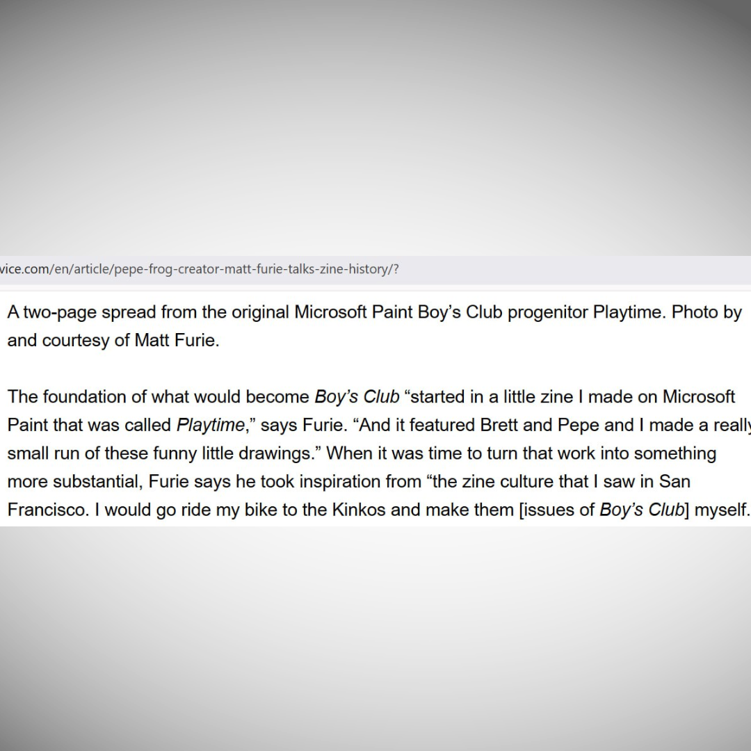Only later would Pepe evolve into a central figure in Boy’s Club. But Play Time came first.